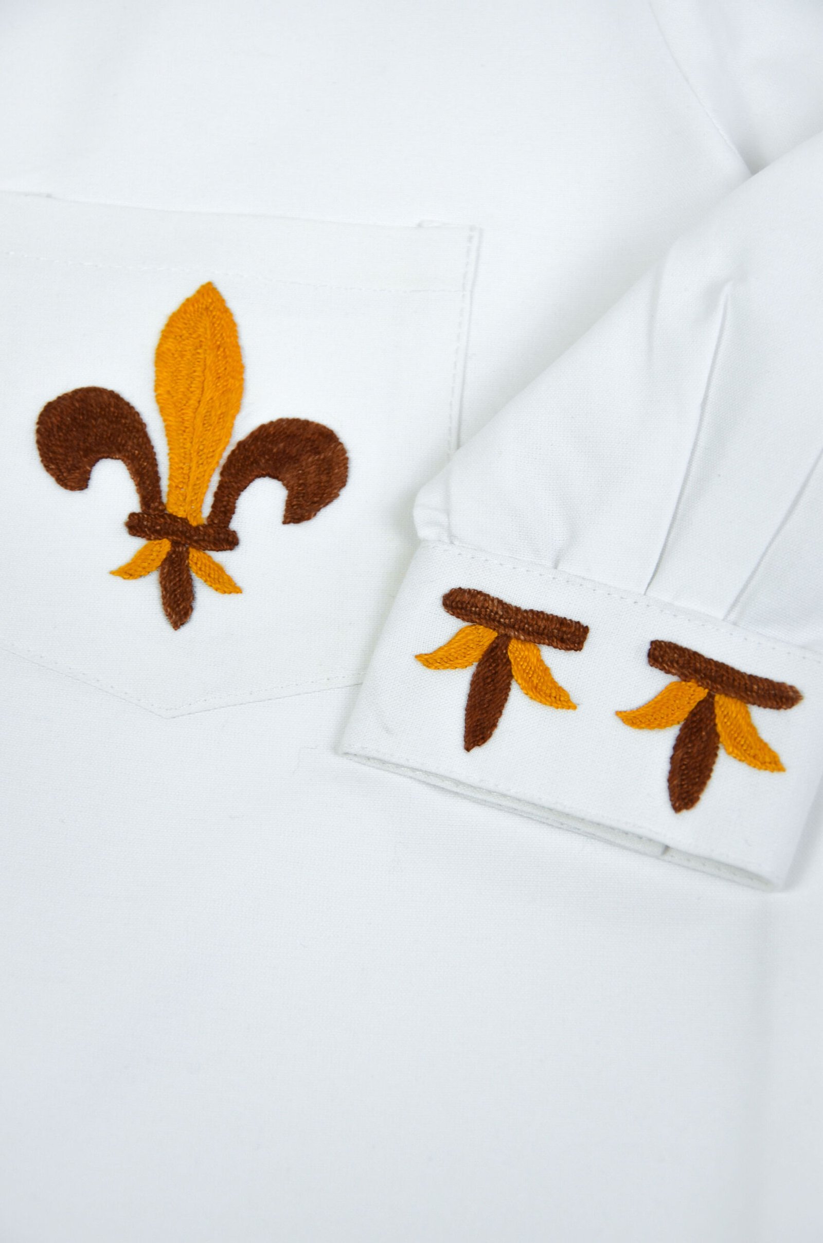 – broderies : marron, jaune